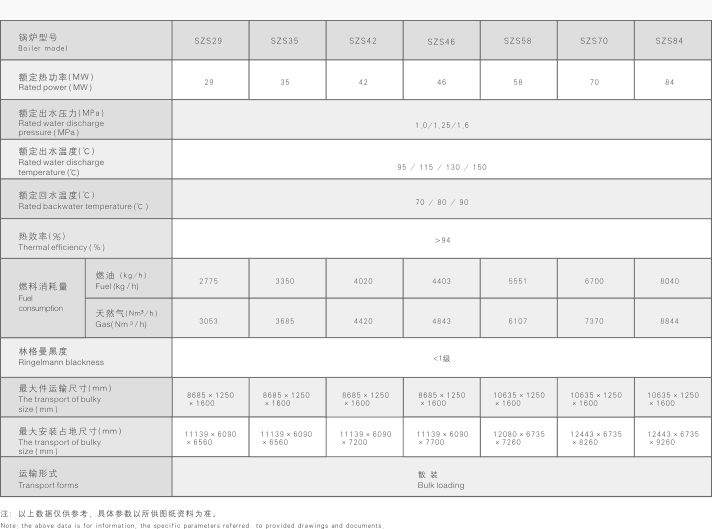单台供热面积:60~150万平方米。总体为D型布置,采用独有的标准及异形全膜式壁结构,散热损失小,本体设计紧凑,优于其他同类产品。锅炉效率可达94-103%