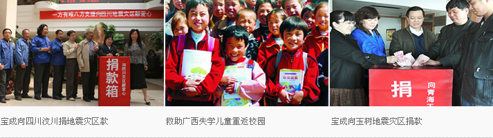 宝成热心公益事业 努力回报社会,将扶贫助困、支援灾区、支教等项公益事业作为企业义不容辞的责任,一方有难,八方支援。2008年5月12日,汶川大地震发生后,当即决定捐款120万元,又发动员工捐款13.6万元;2010年4月,青海玉树地震发生后,为灾区捐款50万元,员工捐款32876元;并先后向舟曲泥石流、四川芦山地震灾区捐款;向宝坻区李家深高级中学赠送锅炉;为南开大学商学院、天津财经大学珠江学院、津南区海河故道、咸水沽一中等单位捐赠大型门口形象灵璧石等。